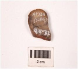 | Description / विवरण | Chert borer cum scraper, visible cortex on ventral surface, flake scars on dorsal surface, regular retouching on edges of dorsal surface diffused bulb on ventral surface proximal end. |