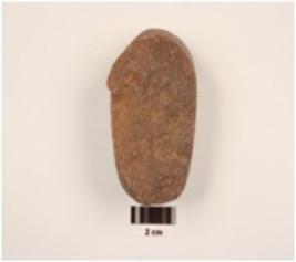 | Description / विवरण | A pebble made on quartzite, oval in section, visible cortex and irregular round in shape. |