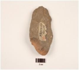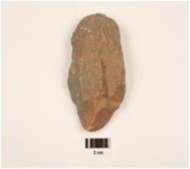 | Description / विवरण | A scraper made on quartzite end struck bifacial, concave in shape use wear marks on edges. |