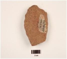 | Description / विवरण | A scraper made on quartzite side struck flake. Unifacial convex in section. Diffused bulb on ventral side. Use wear marks on cutting edges. |