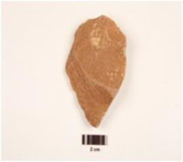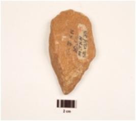 | Description / विवरण | A handaxe made on quartzite, end struck flake, bifacial, convex in section and. One and is pointed. |