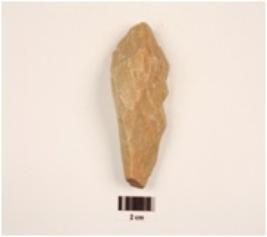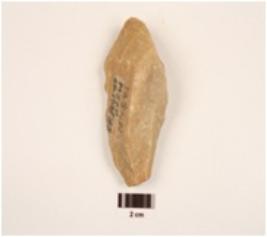 | Description / विवरण | A core made on quartzite unifacial end struck , prepared platform on proximal end and. Irregular in shape. Convex in section. |