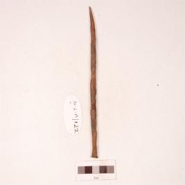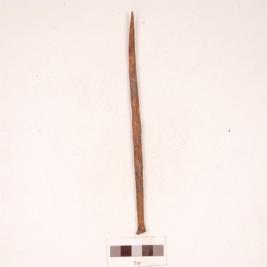 | Description / विवरण | A knobbed nail with round section, tapering to a pointed end, broken flat round head, rough surface. |
