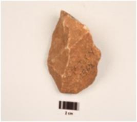 | Description / विवरण | A scraper made on quartzite end struck flake scars on surface and use wear marks on edges. Prepared platform on proximal end. Convex in section. |