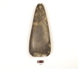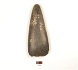 | Description / विवरण | Fragment of a celt made on basalt, rough surface and plano-convex section. |