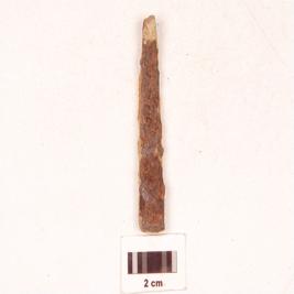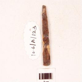 | Description / विवरण | A fragment of nail, with rectangular section, tapering to a pointed end, broken flat round head, rough surface. |