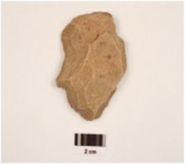 | Description / विवरण | A scraper made on quartzite end struck unifacial diffused bulb on ventral side. Use wear marks on cutting edges. |