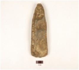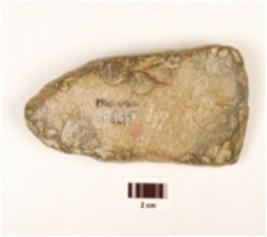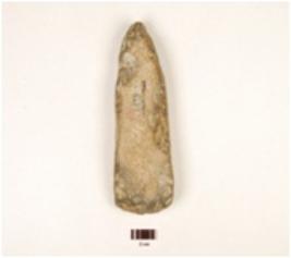 | Description / विवरण | A celt made on basalt, working sharp edge rough surface, triangular section and black colour. |