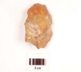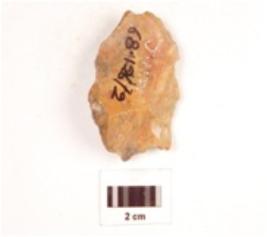 | Description / विवरण | Scraper made on chert end struck flake, flake scars on both sides, irregular retouched edge and plano-convex cross section. |