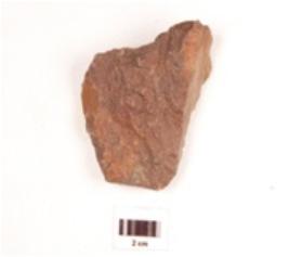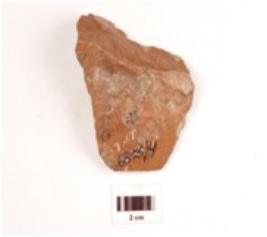 | Description / विवरण | Scraper made on chert end struck flake, partly broken from one side, uneven shape and irregular retouched edge. |