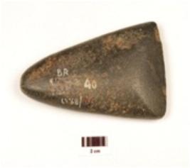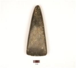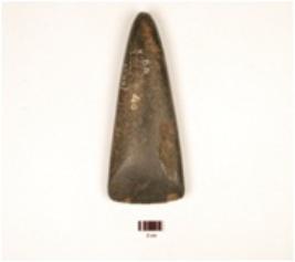 | Description / विवरण | A celt made on basalt, working edges sharp, smooth surface, triangular section, black in colour and polished. |