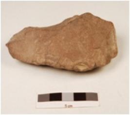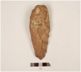 | Description / विवरण | A quartzite handaxe made on endstruck flake, flake scars on the surface, prepared platform on the proximal end and wavy cutting edges. |