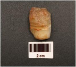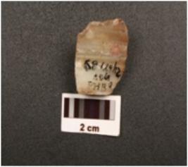 | Description / विवरण | A scraper made on end struck chalcedony flake. Flake scars on dorsal side. Bulb of percussion on ventral side. Prepared platform on proximal end. Partially retouch cutting edge. |