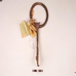 | Description / विवरण | Door ring with a fastner, tapering pointed end, rough surface, pointed end fired in the door. |