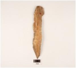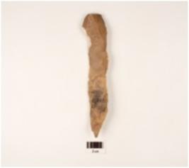 | Description / विवरण | A blade made on chert with single ridge on dorsal side, diffused prepared platform, bulb on ventral side, pointed on the distal end, use wear marks on the cutting. Edge, triangular in section. |