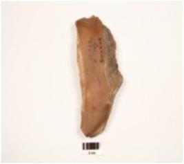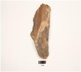 | Description / विवरण | A side scraper made on chert end struck flake with prepared platform bulb on the ventral side, irregular retouching on the cutting edges, double ridge on dorsal trapezodial in section. |