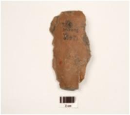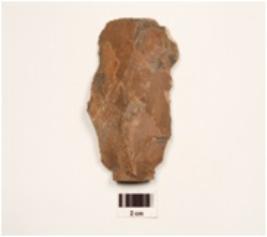 | Description / विवरण | A side scraper made on chert end struck flake with prepared platform bulb on the ventral side, one ridge on the dorsal side, irregular retouches on the cutting edge. |
