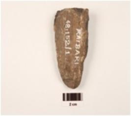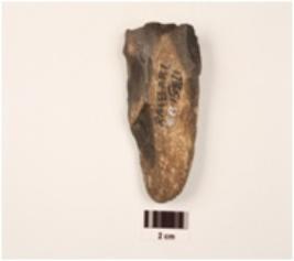 | Description / विवरण | A side scraper made on chert end struck flake, regular retouched prepared platform, irregular and rough surface. |