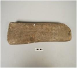| Description / विवरण | Sandstone polisher, a groove visible on the surface along side, polished surface, rectangular shape and rectangular cross section. |