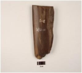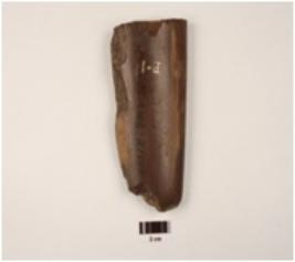 | Description / विवरण | A side scraper made on a red jasper, prepared platform, irregular retouching on the working edges, partly rough surface. |