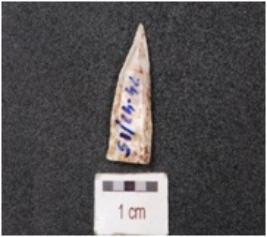| Description / विवरण | A borer made of chert, has blade scars on surface and pointed working end. |
