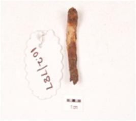 | Description / विवरण | Fragment of an iron nail, slightly curved at one end, broken. |