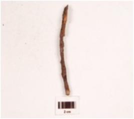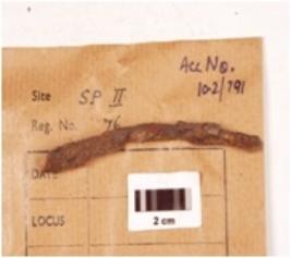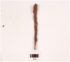 | Description / विवरण | A fragment of iron nail, uneven surface and rusted, flat from bottom. |