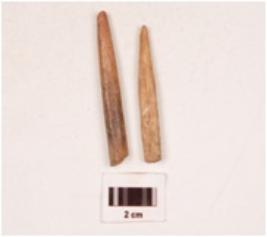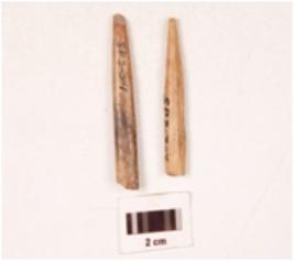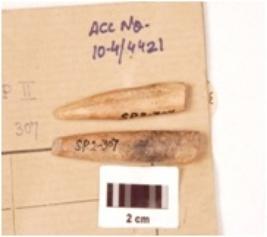| Description / विवरण | Bone point partly broken into two pieces, round in section polished. |