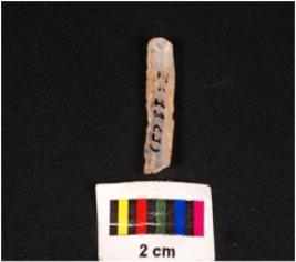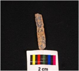 | Description / विवरण | Microlith blade with wavy mid ridge on dorsal and use wear marks on cutting edges. Triangular in section with diffused bulb on proximal end. |