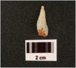 | Description / विवरण | Flake made on chalcedony with use-wear marks along cutting edge, flake scars on dorsal side, prepared platform and diffused bulb on ventral side. |