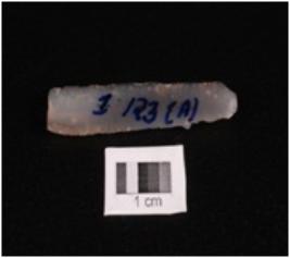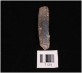 | Description / विवरण | Parallel sided blade with two riges on dorsal side, prominent bulb on proximal end, eges are sharp, smooth surface, it has trepezoid section. |