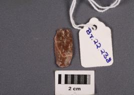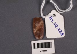 | Description / विवरण | A parallel sided microlithic blade made on chert with a ridge on the dorsal side, prepared platform and bulb on the ventral side, irregular cutting edges. Trapezoidal in section. |