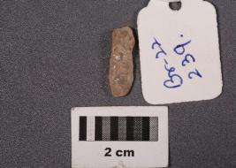 | Description / विवरण | Fragment of a blunted blade with highly weathered surface. |