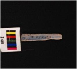 | Description / विवरण | Parallel sided blade with two riges on dorsal side, use wear mark on cutting edges, it has trapzoid section, prominent bulb on proximal end. |