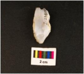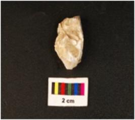| Description / विवरण | Heat treated agate flake with unprepared platform with irrailure visible on the positive bulb. |