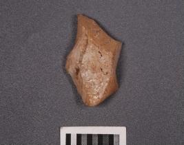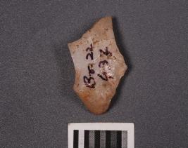 | Description / विवरण | Fragment of a point with on blunted lateral surface, intact proximal end with prepared platform, diffused bulb, broken pointed distal end. |