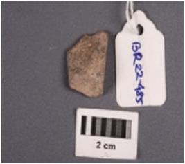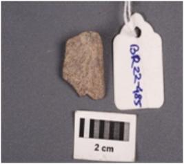 | Description / विवरण | Fragment of a flake, on basalt, sharp edges on one side. |