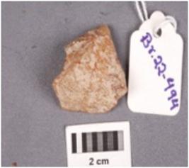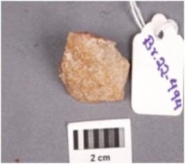 | Description / विवरण | Fragment of a core on quartz, with light yellowish surface. |
