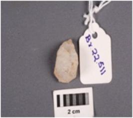 | Description / विवरण | Fragment of a core on quartz with a pointed end. |