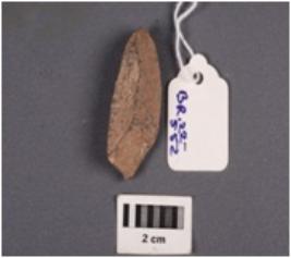 | Description / विवरण | A blade made on granite with a ride on the surface, prepared platform and diffused bulb, use-wear marks on right-cutting edge on dorsal side, triangular in section. |