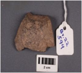 | Description / विवरण | A flake of basalt with cortex on the surface, prepared platform with use-ware marks on edges. |