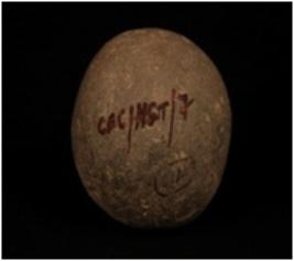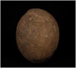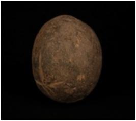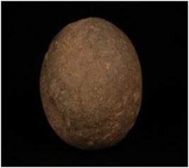 | Description / विवरण | Handmade terracotta sling ball. Round in shape. Incised floral design. Rough surface. Grey in colour. |