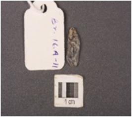 | Description / विवरण | Fragment of microlith stone blade with double ridge on dorsal and trapezoid in section. |