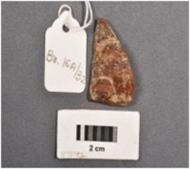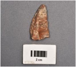 | Description / विवरण | A chert flake with two ridges on dorsal side, prepared platform, defused bulb on ventral side and use wear marks on edges. |