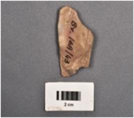 | Description / विवरण | Fragment of on end struck flake, made on chert with flake scars on dorsal side, prepared platform and defused bulb on ventral side. |