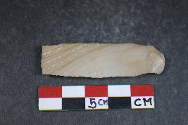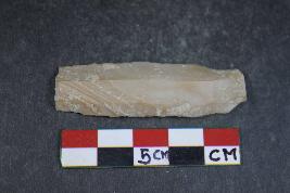 | Description / विवरण | A parallel sided blade with positive bulb of percussion and two dorsal ridges having smooth surface. |
