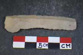 | Description / विवरण | A parallel-sided blade with positive bulb of percussion and two dorsal ridges having smooth surface. |