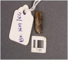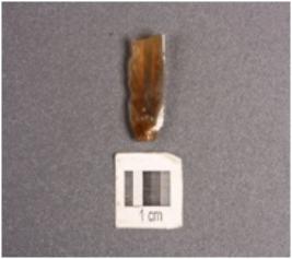 | Description / विवरण | Parallel sided microlithic blade with two ridges on dorsal side, prepared platform, diffused bulb on ventral side, broken along at distal end, trapezoidal in section and use wear marks on cutting edges. Heat treatment given to raw material. |