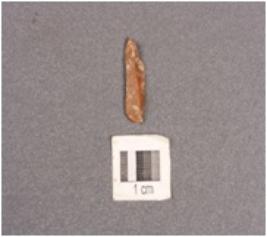 | Description / विवरण | A microlithic backed point with a mid ridge on dorsal side, bulb on ventral side. Pointed along at distal end and triangular in section. |