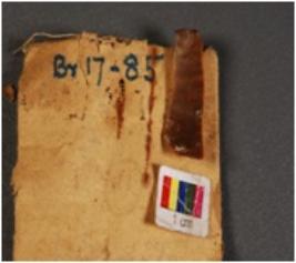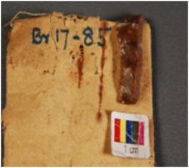 | Description / विवरण | Chert blade with a ridge on dorsal side, proximal end with a striking platform with, positive bulb on its ventral side. |